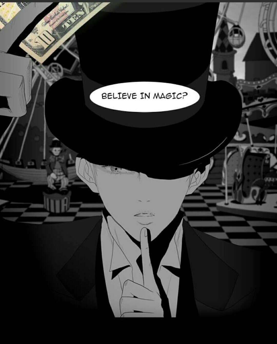 Artwork: The artwork is quite good. The author predominantly uses black, white and grey in his manhwa, which suits the story perfectly. He uses 3D drawing to draw emphasis. He uses colors to show magic and gracefully illustrates that magic is nothing but illusion.